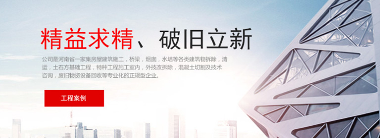 ??公司注冊資金5600萬元,具有河南省住房和城鄉(xiāng)建設廳頒發(fā)的《建筑工程施工總承包貳級》、《爆破與拆除工程專業(yè)承包叁級》、《地基基礎工程專業(yè)承包貳級》、《鋼結構工程專業(yè)承包貳級》等資質證書和有效的《安全生產許可證》。公司一直以來經過艱苦創(chuàng)業(yè)、不斷開拓創(chuàng)新,始終堅持公司理念、以優(yōu)質高效為服務標準緊跟市場發(fā)展,把握機會迎接新的挑戰(zhàn)。